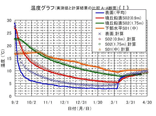 ここでは、墳丘部の温度実測結果を以下に示す。