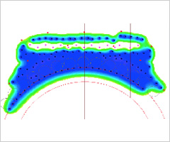 地盤内の熱伝導解析により、地盤の温度分布や凍土成長のモニタリングを行います。トンネル掘削工事における、凍土の露出やガス切断などといった熱負荷による凍土への影響も可視化します。