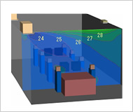 高い解析技術を用いて地盤凍結工法での凍土成長予想や、建物内の温度、風速などの環境シミュレーションを行います。さらに、解析ソフトを自社開発しており、複雑な環境下でも精密な予測を実現します。